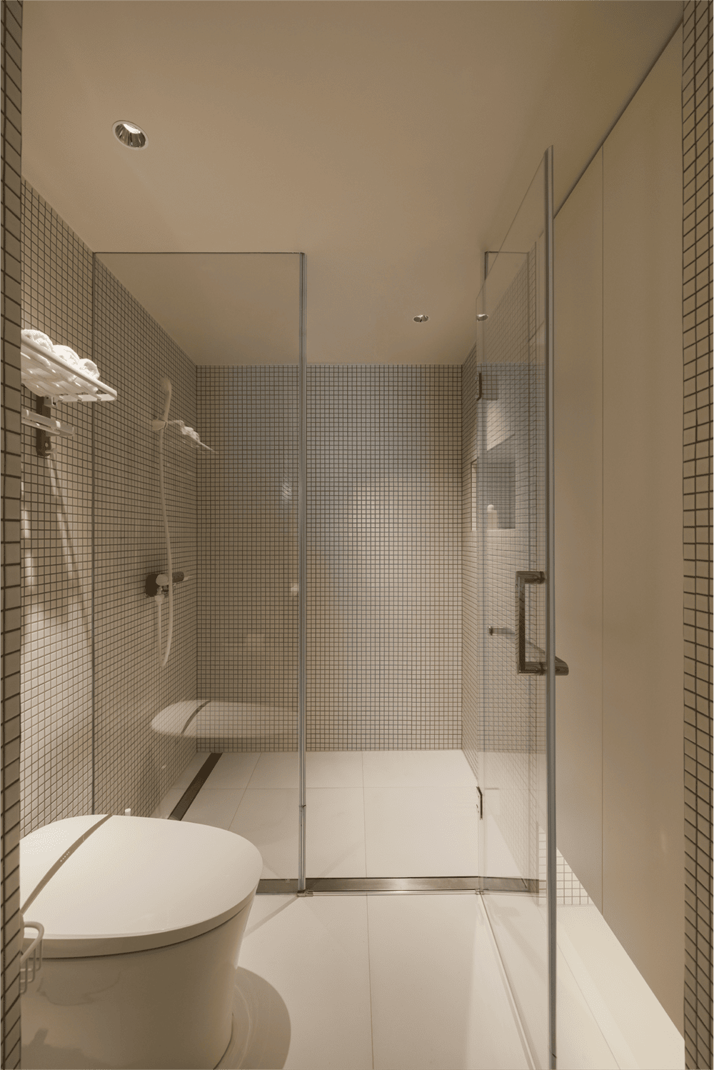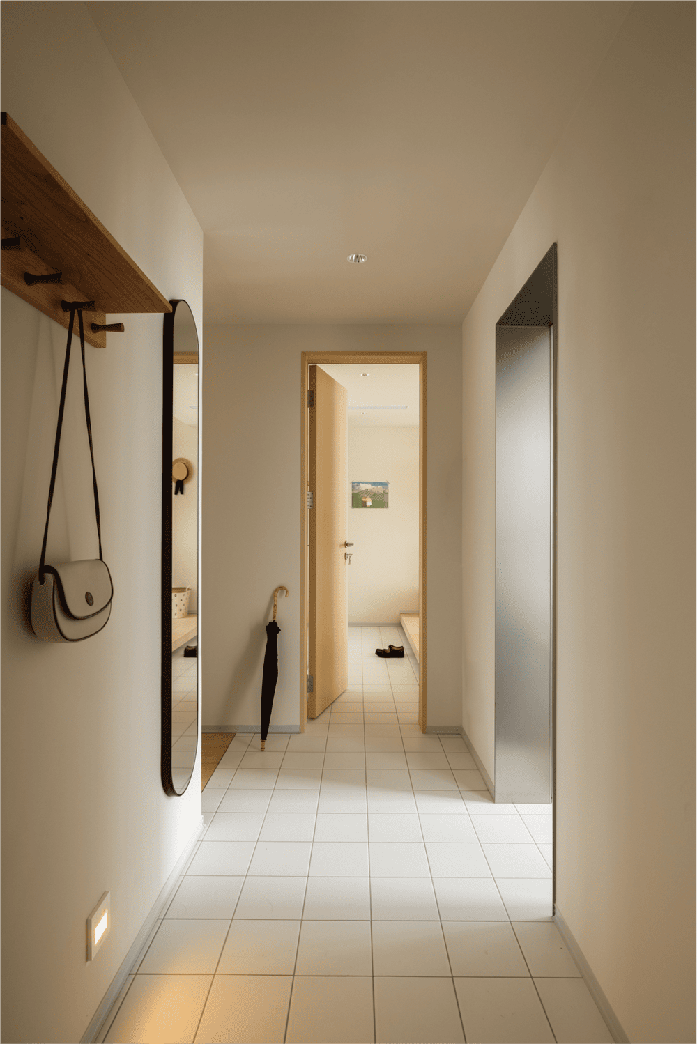 At the same time, the pocket door design added to the cloakroom and shoe cabinet creates a migration line, which makes the freelancer owner switch freely between work and life mode.The central axis rotating rainbow glass window customized for the bathroom is both practical and beautiful. On the one hand, the dark guard has been transformed to ensure air circulation. On the other hand, the warm tone and light decoration create a natural warm atmosphere.