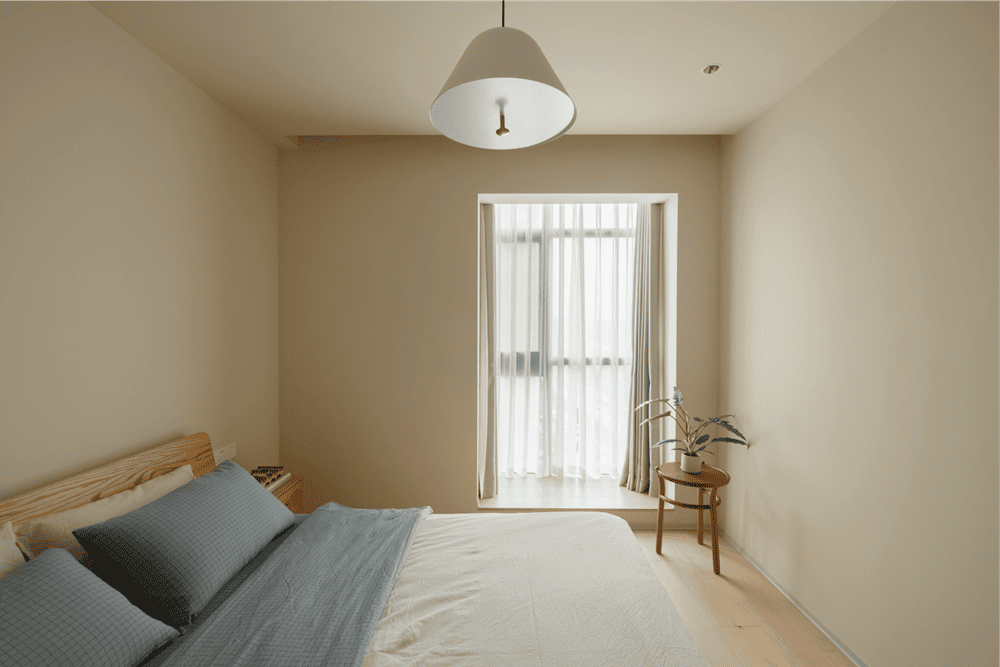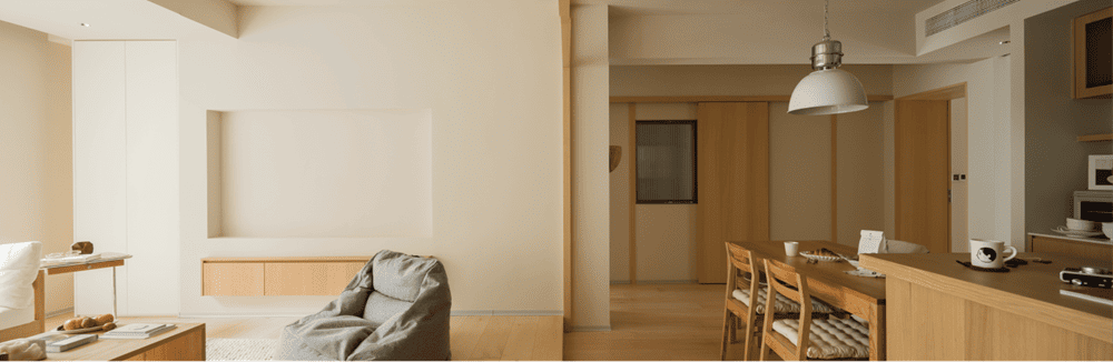 我们拥有大面积的同色系。作为基调,应用于墙面、立柜、窗帘。上方,搭配原木色家具,让整体空间更加自然、朴实。通透的灯光,让阳光流淌在绿色植物上,生意盎然。我们追求建立人与空间的自然关系,追求人与空间的和谐互动。我们的家在"日暮里"。这也是我们的初衷和巧思最恰当的表达。