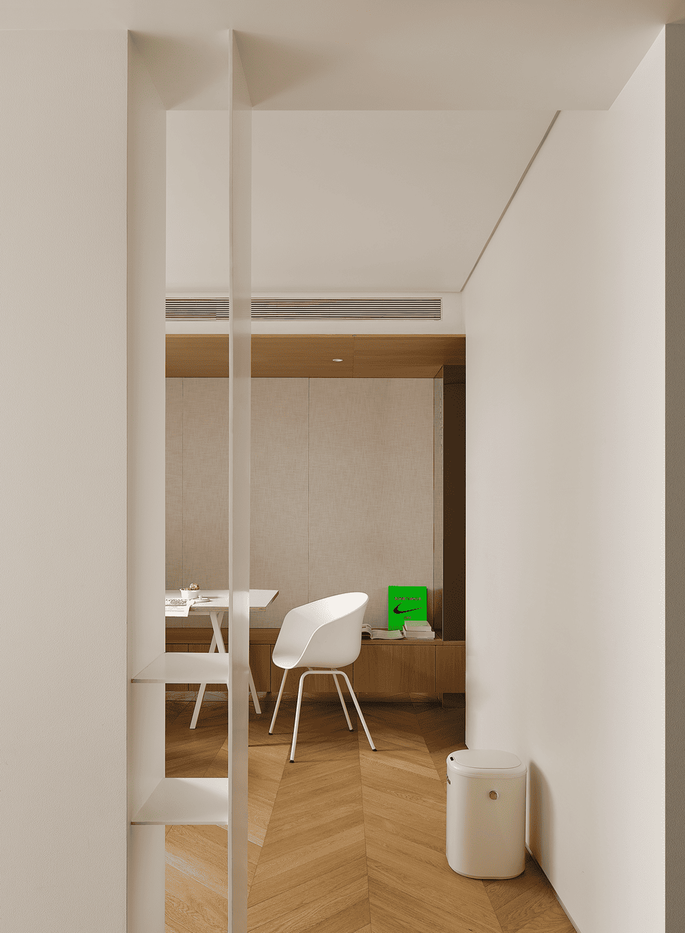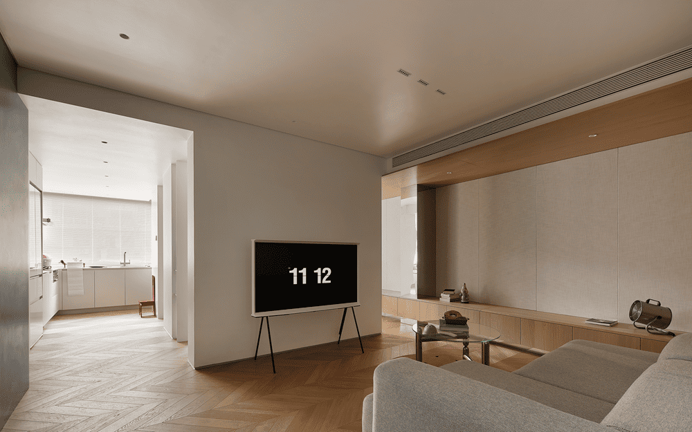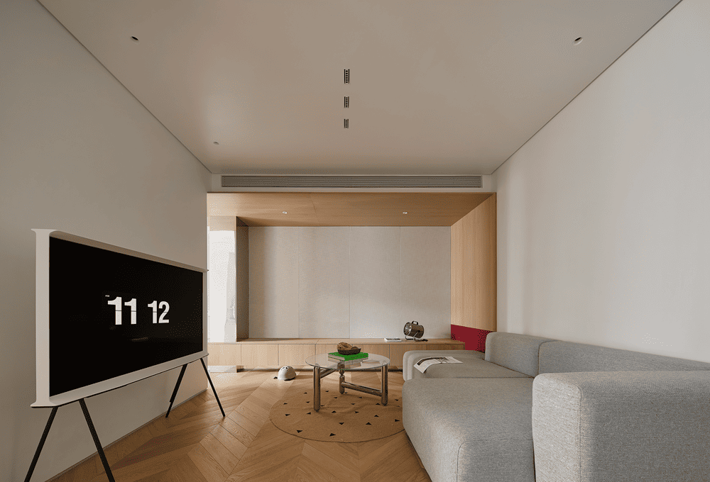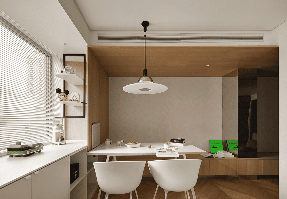 从几个方格间窥见生活的参与感,原木与白色的氛围感以柔和的极简弥散在整个场域中。