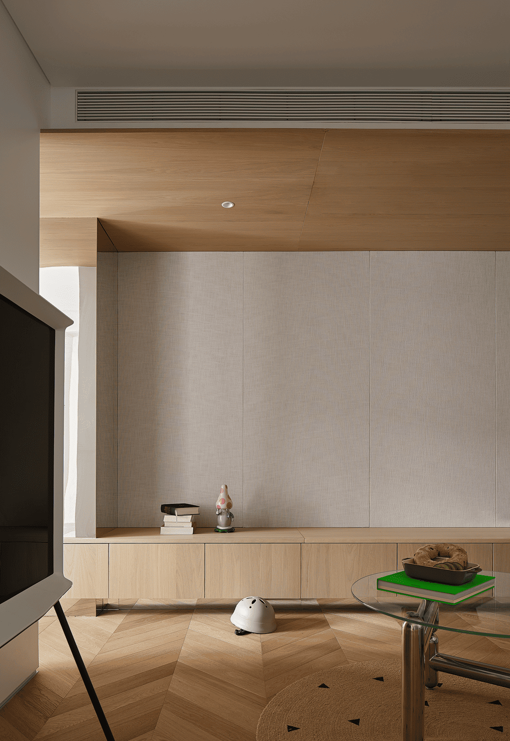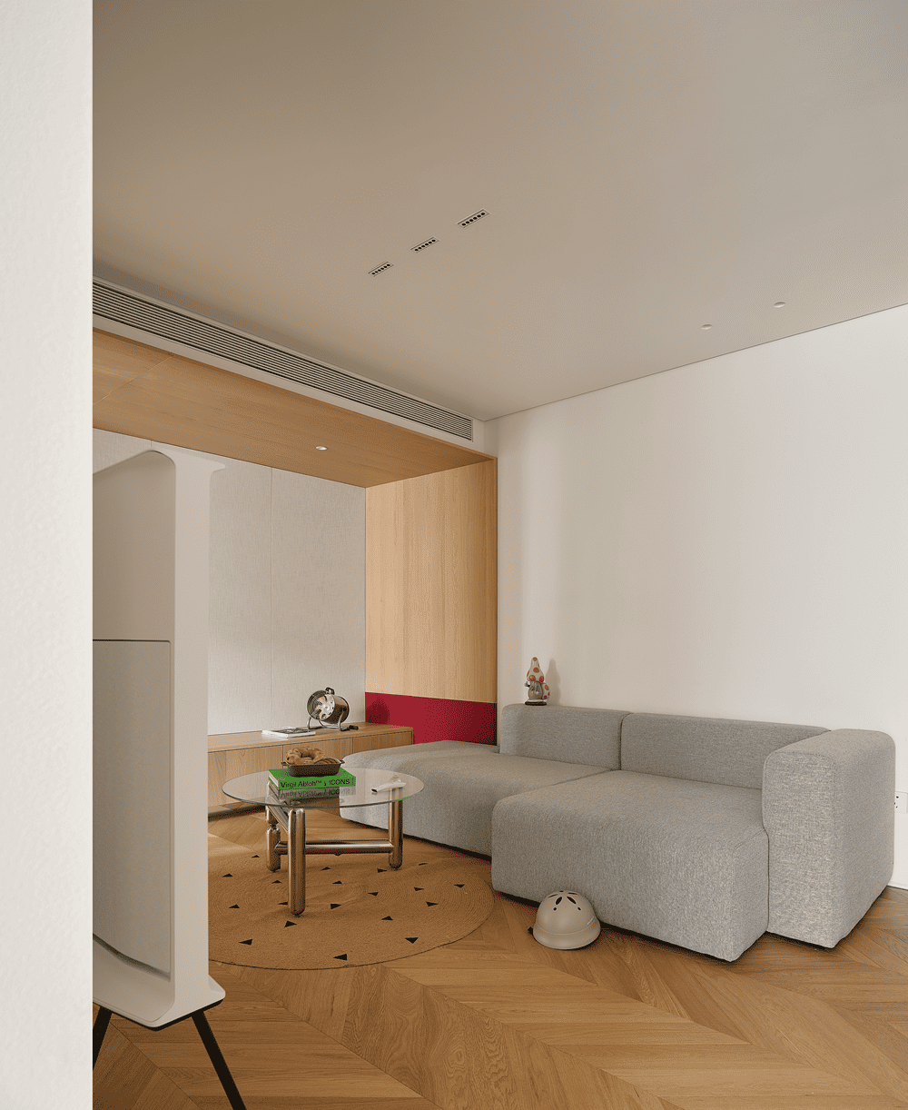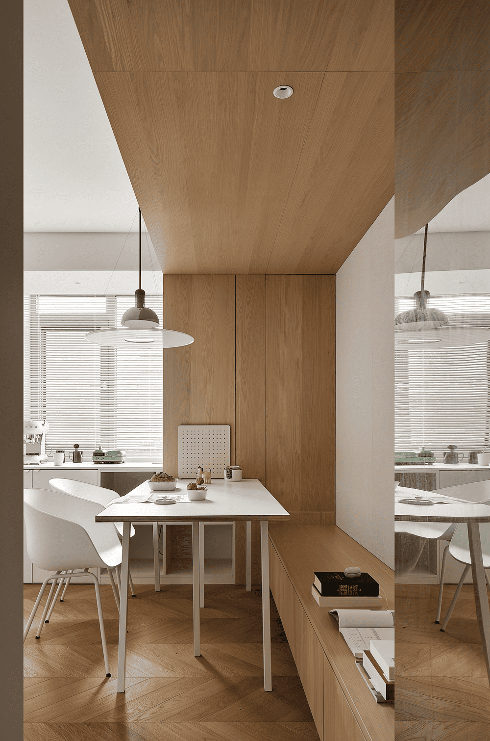 从几个方格间窥见生活的参与感,原木与白色的氛围感以柔和的极简弥散在整个场域中。