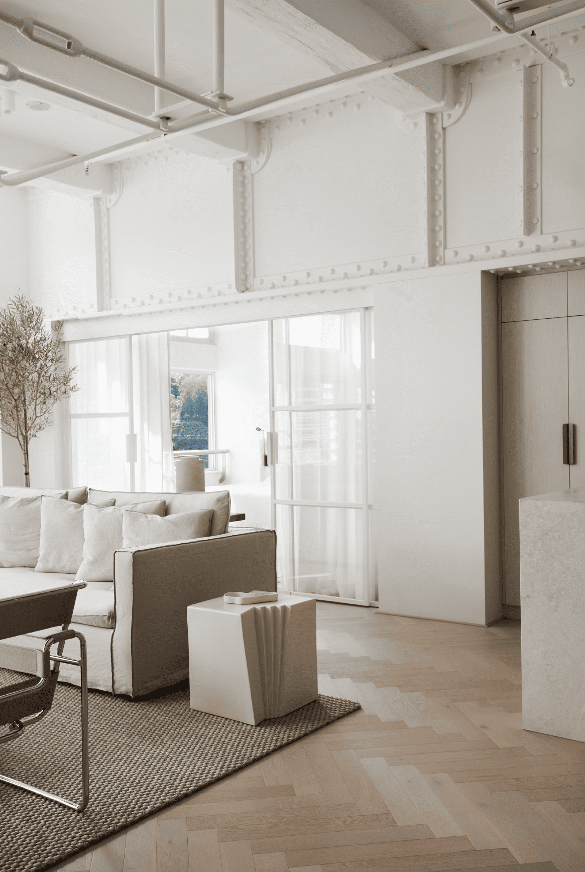 最终,这个项目成功地将历史遗产与现代生活需求无缝连接。通过保留建筑原有的结构美学 —— 如高耸的裸露横梁天花板、钢桁架和大型工业风窗户,并注入简约精致的设计语言,Lawless & Meyerson打造了一个既尊重过去又面向当下的家。